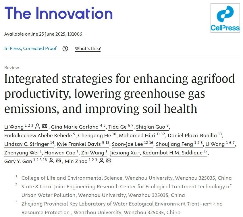 近日,我校生环学院生态学学科团队赵敏/甘延太/王丽在Cell Press综合性期刊Innovation发表题为“Integrated strategies for enhancing agrifood productivity, lowering greenhouse gas emissions, and improving soil health”的学术论文。在气候变化背景下,实现粮食安全、生态环境可持续与土壤健康协同发展,是全球生态环境面临的核心挑战。传统粮食生产模式过度追求产能而忽视生态韧性,加剧了土壤退化、温室气体排放和资源低效利用。研究基于对全球39,162项研究的二次荟萃分析系统评估了全球现代生态创新技术在粮食安全、低碳减排及土壤修复中的作用,揭示“粮食安全-环境友好-土壤健康”协同优化的关键驱动机制,建立了实现“增产、减排、土壤修复”的丰碳壤三维耦衡系统(FCS-3D),为构建高产能、可持续、强韧性的生态新范式奠定了基础,为发展气候智能型韧性生态农业给予策略支撑,为实现联合国可持续发展目标提供了转型路径,规模化实施该系统将重塑全球农业生态新格局。