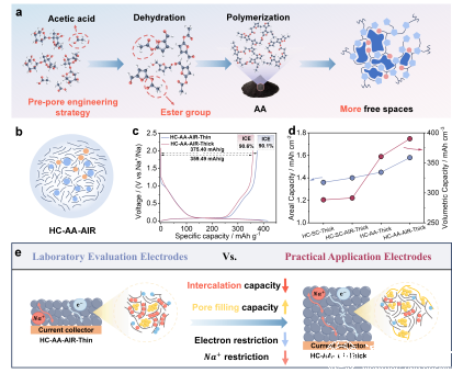 硬碳因其成本低廉、氧化还原电位适宜以及优异的储钠性能,已成为钠离子电池的首选负极材料。然而,尽管通过孔结构调控等策略能够提升可逆容量,但这些方法往往会导致材料压实密度的下降,从而限制体积能量密度并阻碍其大规模应用。因此,如何平衡孔结构优化与电极密度保持之间的协同关系,并深入探究其相互作用机制,对推动硬碳负极在实用化钠离子电池中的发展至关重要。
