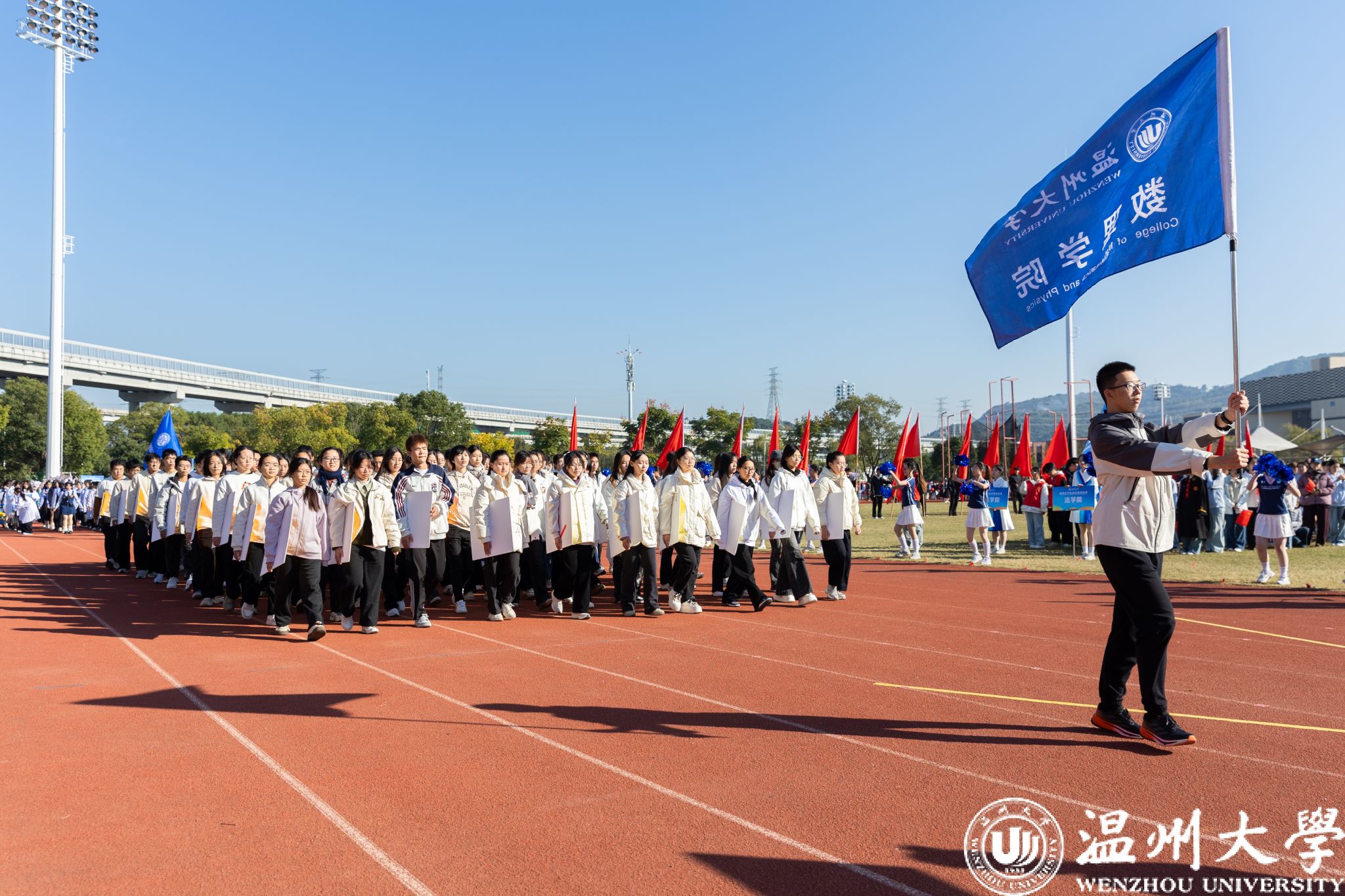 天朗气清,惠风和畅,金秋的赛场铺满阳光,属于 WZUers 的运动盛典开场啦!11月20日上午,杏吧 第48届运动会田径比赛在北校区运动场火热开幕。校领导钱强、赵敏、庄兴忠、赵降英、王舜、刘玉侠、王展光、王军等出席开幕式,杏吧 第48届运动会主席团成员,各学院院长、书记以及相关部门负责人参加。副校长王尧骏主持。