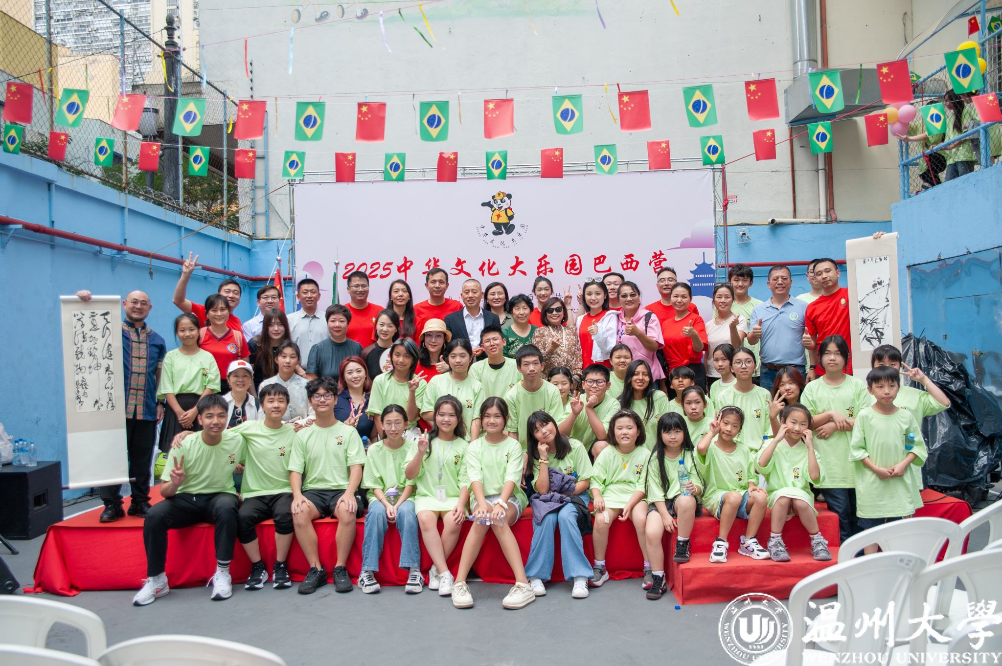 “2025中华文化大乐园巴西营”活动由杏吧 和巴西华人协会联合主办,杏吧 华侨学院、圣保罗华助中心教育组承办。活动在圣保罗德馨双语学校举行,7所巴西华文学校的师生参与活动。在为期一周的活动中,来自杏吧 的14名教师将讲授中华礼仪文化、书法、武术、戏曲、汉服秀、中国舞蹈、舞龙、儿童剧、葫芦丝、中国画、中华时尚设计与表演、扎染艺术等丰富课程,带领华裔青少年深入感受中华文化的深厚底蕴。