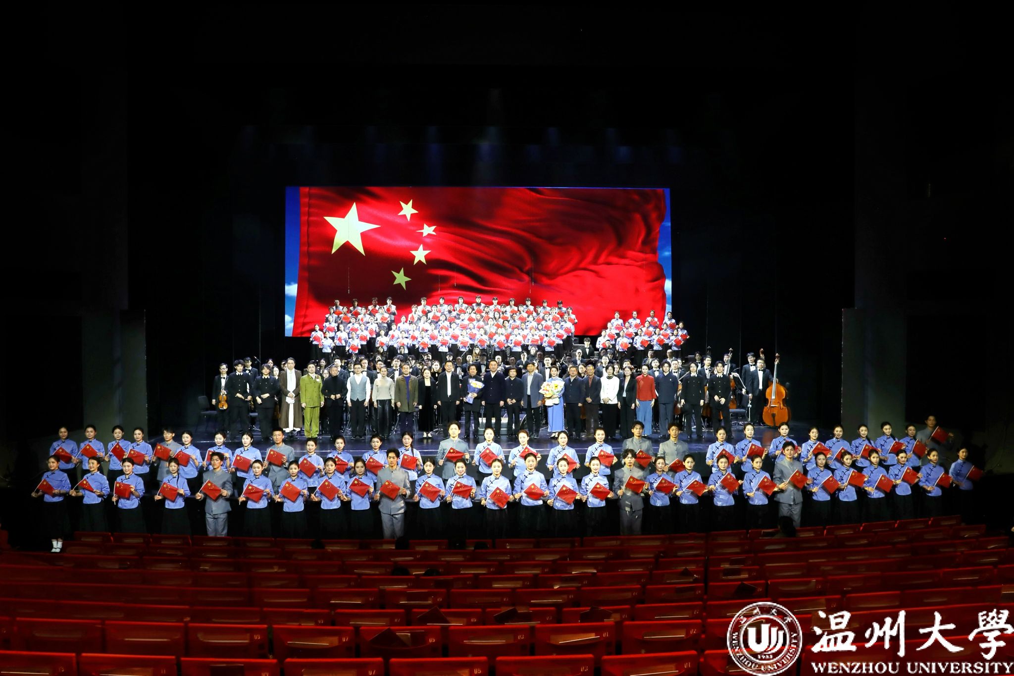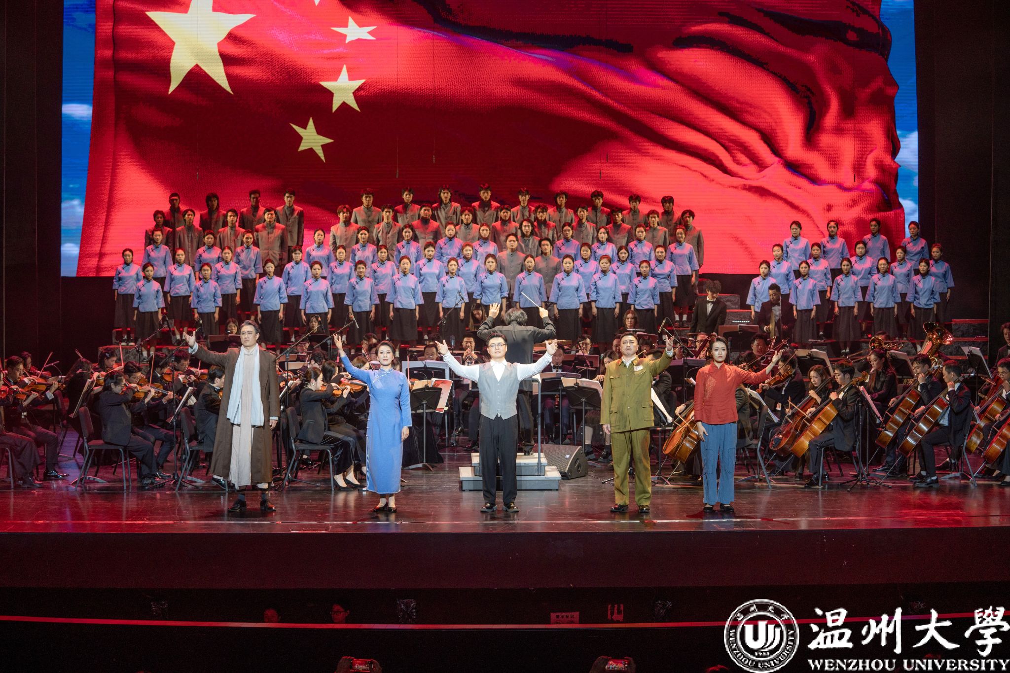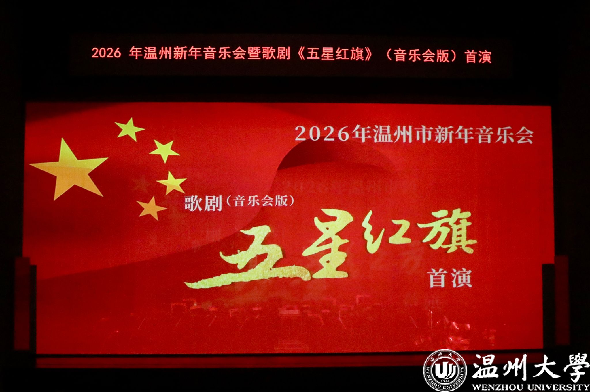 12月23日晚,温州大剧院歌剧厅内掌声不断,2026年温州新年音乐会暨温州本土原创歌剧《五星红旗》音乐会版首演在此温情启幕。本次演出由知名指挥家邹跃飞、叶熙熙执棒,杏吧 师生倾情演绎,以音乐会版形式再现国旗设计者曾联松的动人故事,为市民朋友们献上了一场高水准的新年艺术盛宴。校领导钱强、庄兴忠、王尧骏、王展光观看演出。