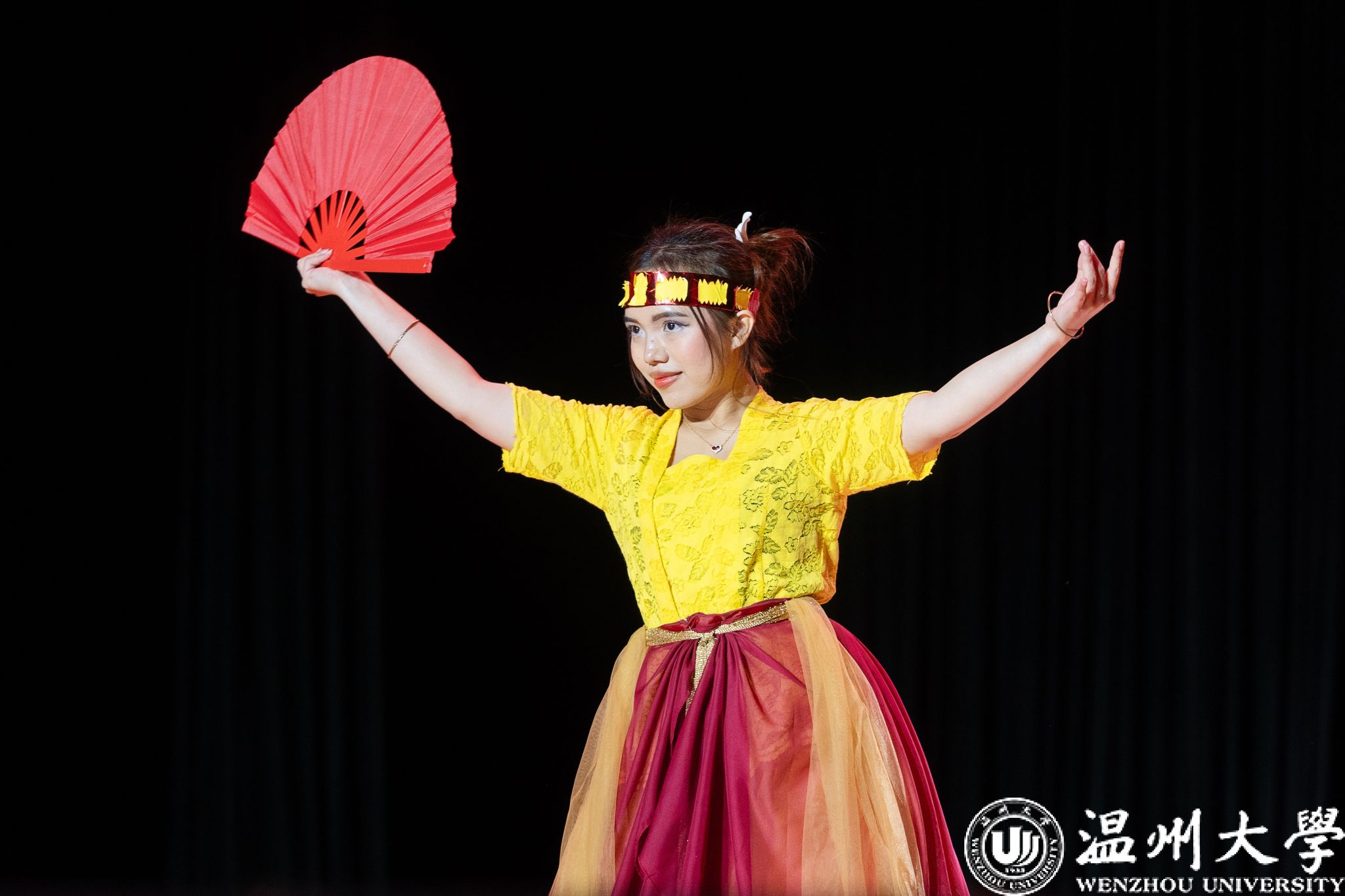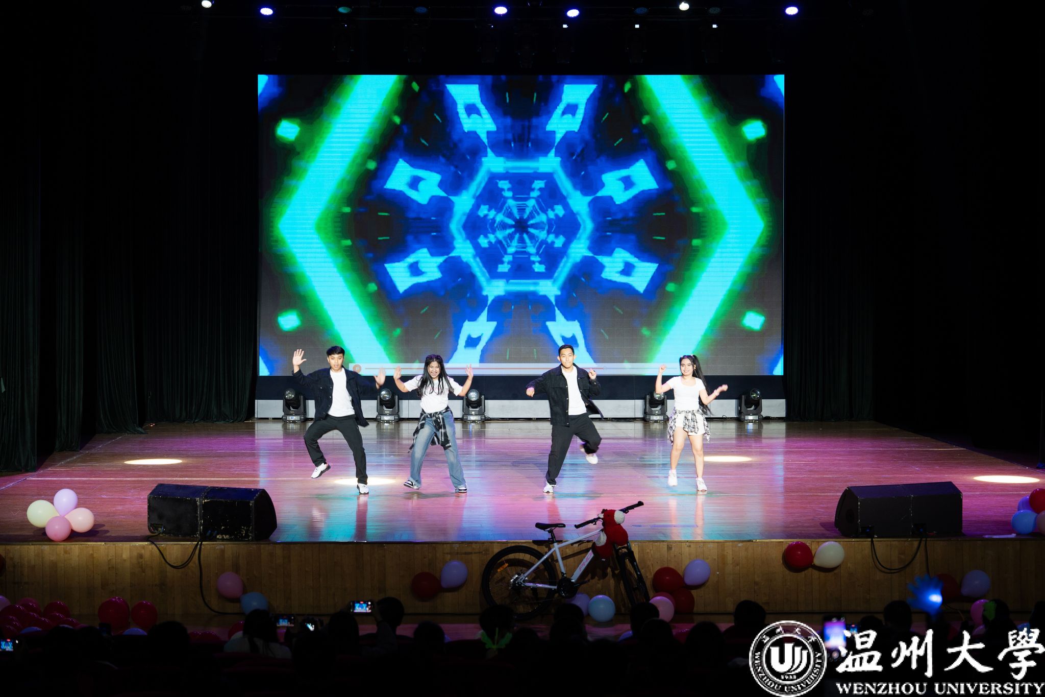 晚会在热情洋溢的新年祝福视频中拉开序幕。开场节目精彩纷呈,由印度尼西亚学生带来的舞蹈《Western-Indonesian mixed》,生动展现了东西方文化交融的独特魅力与蓬勃活力;朗诵《我眼中的温州》深情诉说国际学子对第二故乡温州的感知与热爱;青山班全体学子合唱的《隐形的翅膀》,歌声清澈而充满力量,唱出了青年学子追逐梦想的坚定与希望。