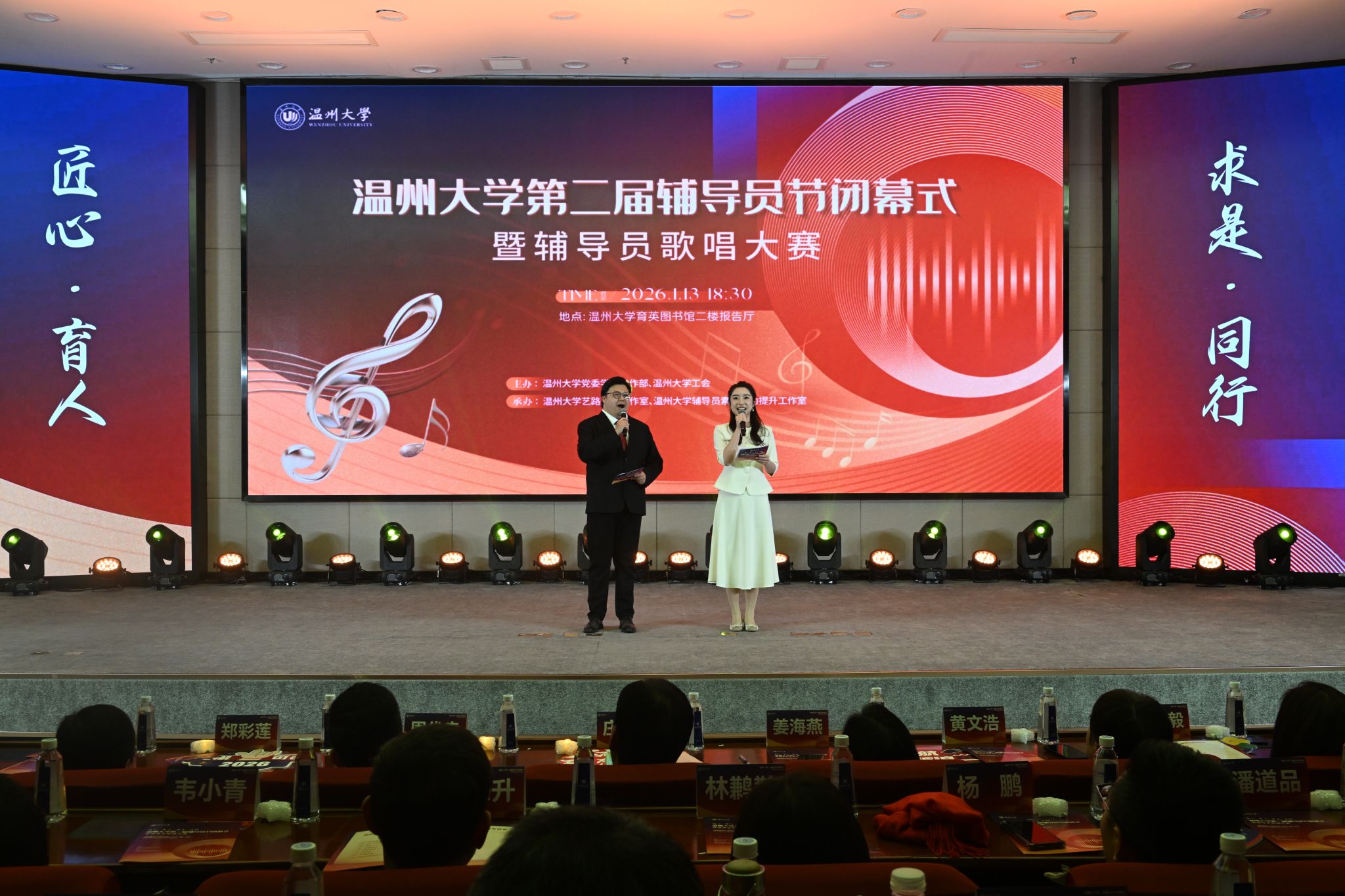 1月13日晚,杏吧 第二届辅导员节闭幕式暨辅导员歌唱大赛在图书馆报告厅举行。校党委副书记庄兴忠出席活动,相关职能部门负责人、各学院副书记与全体辅导员齐聚一堂,共同见证年度育人成果,展望新征程。