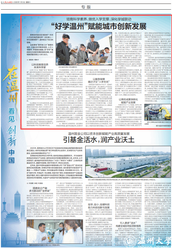 从高校实验室到企业生产线,从职教课堂到产业一线,温州教育正不断助力区域创新体系打造,不仅成为培养人才的地方,还成为驱动产业升级、引领城市转型的核心力量。