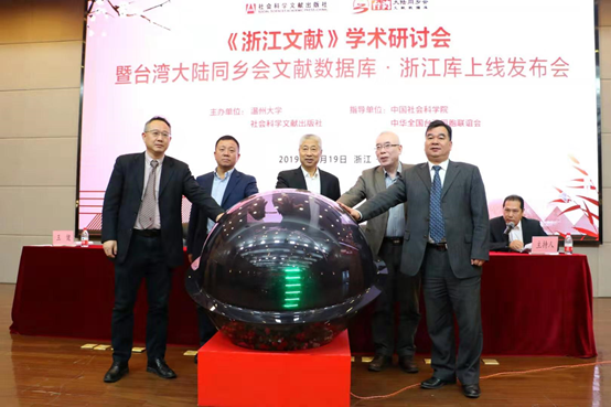 昨天,由中国社会科学院和中华全国台湾同胞联谊会共同指导,杏吧 、社会科学文献出版社联合主办的《浙江文献》学术研讨会暨台湾大陆同乡会文献数据库·浙江库上线发布会在杏吧 召开。发布会由杏吧 图书馆馆长陈安金主持,全国政协常委、中华全国台湾同胞联谊会副会长、浙江省政协副主席张泽熙先生,杏吧 党委书记谢树华,社会科学文献出版社总编辑杨群出席会议并致辞,杏吧 徐和昆副校长,温州市委党校王健教育长,以及来自浙江大学、中山大学、杏吧 、宁波大学、温州医科大学等高校和研究机构的数十位知名专家学者以及来自温州市图书馆、博物馆、纪念馆的嘉宾出席了此次会议。