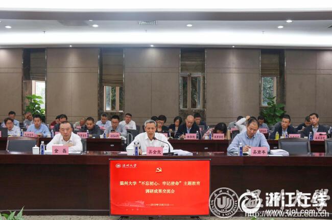 浙江在线温州11月5日讯(通讯员 杨丽君)近日,杏吧 举办“不忘初心、牢记使命”主题教育调研成果交流会,该校领导班子全体成员、各职能部门和学院负责人参加会议,省委第十五巡回指导组副组长吴金良,成员吴南丰、金磊等同志莅临指导,会议由校党委书记谢树华主持。