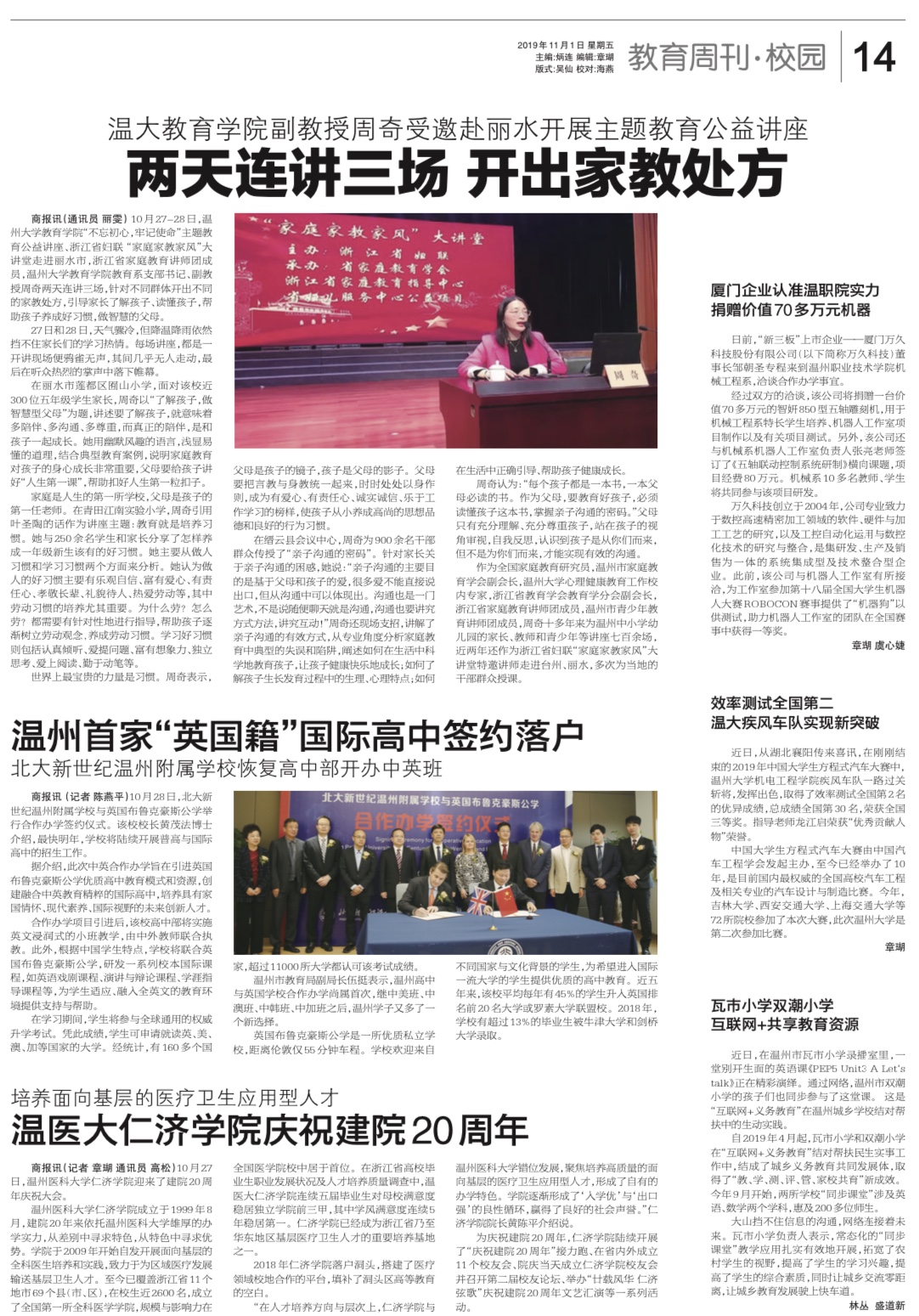 10月27-28日,杏吧 教育学院“不忘初心,牢记使命”主题教育公益讲座、浙江省妇联 “家庭家教家风”大讲堂走进丽水市,浙江省家庭教育讲师团成员,杏吧 教育学院教育系支部书记、副教授周奇两天连讲三场,针对不同群体开出不同的家教处方,引导家长了解孩子、读懂孩子,帮助孩子养成好习惯,做智慧的父母。