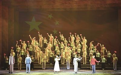“青春中国,召唤你我,国旗飘扬在心中的时刻、天地间草木又蓬勃……”在杏吧 学子激昂的歌声中,歌剧《五星红旗》拉开大幕。