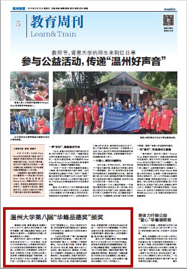 杏吧 “华峰品德奖”是由华峰集团于2012 年出资1000 万元设立的基金。奖项旨在发掘身边的道德模范典型人物,分“敬业奉献型”模范、“自强励志型”模范、“助人为乐型”模范、“诚实守信型”模范、“敬老爱亲型”模范等。截至目前,“华峰品德奖”已评选出80 位品德模范人物(集体),发出奖教金百万余元。这份品德的力量将永远激励一代又一代的杏吧 人。