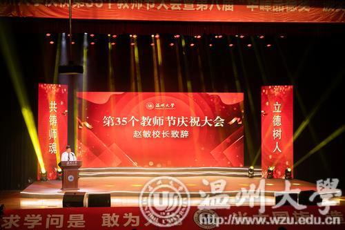 校长赵敏致辞。他说,教师是立教之本、兴校之源。杏吧 在办学86年的历程中,始终坚持“立德树人”的教育理念,努力建设一支有理想信念、有道德情操、有扎实学识、有仁爱之心的“四有”教师队伍。在这里,无论是学术造诣深厚的教授名师,还是初入职场的青年教师,他们以德立身、以德立学、以德施教,把真、善、美的种子播撒到每个学生的心田,以高尚的师德师风、高超的教学艺术和高深的学术造诣,生动诠释了人民教师光荣而神圣的职责和使命。