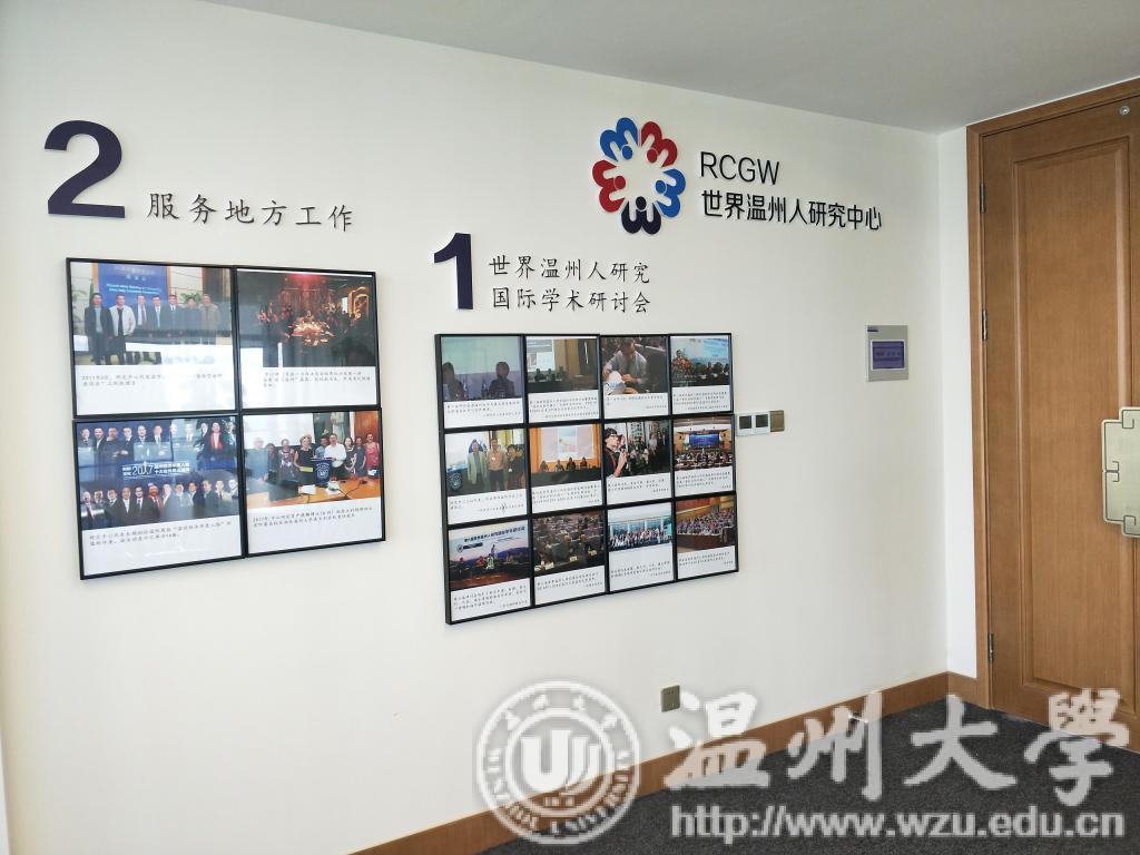 一进入世界温州人研究中心,墙上的许多照片吸引了记者的注意。照片墙分为两个主题,第一个主题是世界温州人研究国际学术讨论会,里面是从2010年以来举办的各届世界温州人研究国际学术讨论会的盛况。照片墙的第二个主题是服务地方工作,以及世界温州人研究中心的研究员们配合温州市政府参与海内外温州人学术研究活动情况。世界温州人研究中心秘书长、杏吧 商学院教授张一力博士向记者一一讲述照片的故事。