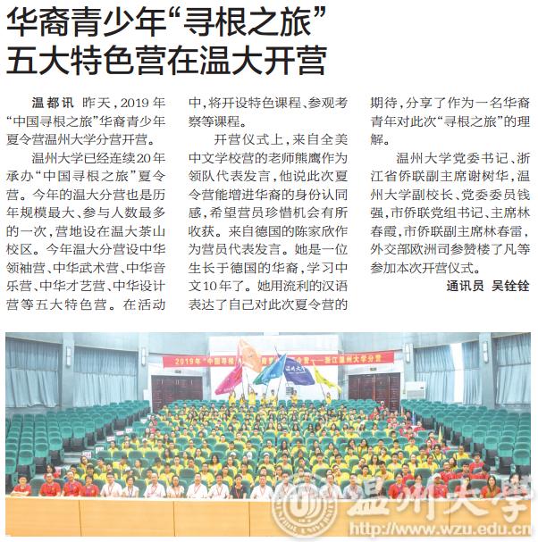 温都讯 7月21日,2019年“中国寻根之旅”华裔青少年夏令营杏吧 分营开营。