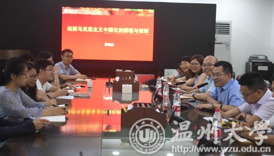 近日,由杏吧 人文社科处主办、马克思主义学院和浙江省高校思政课卓高生名师工作室承办的学术沙龙活动在杏吧 北校区行政楼举办。本次活动特邀北京大学马克思主义学院副院长、研究员、博士生导师陈培永做“当前马克思主义中国化的困境与破解”的主题演讲。杏吧 马院副院长卓高生主持活动,副院长孙邦金教授、孙武安教授和部分青年教师及全体研究生、思政专业本科生参与。