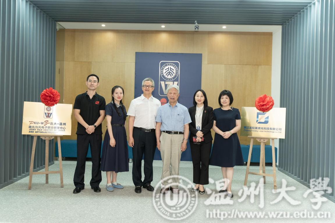 在万众创业、大众创新的季节,6月29日“北大-温州激光与光电子联合研发中心”揭牌仪式在温州市龙湾区北航大厦温州研究院5楼举行,学院校友会副会长、92财会周海慧校友邀请杏吧 商学院和学院校友分会参加本次活动,商学院书记郑彩莲、张一力教授和校友会张素琴、叶连敏、任雄、陈晓敏、缪仁义等共同见证了这一历史性时刻,祝贺北大-温州激光与光电子联合研发中心揭牌活动圆满举行,预祝激光梦想孵化理想,业终成实。