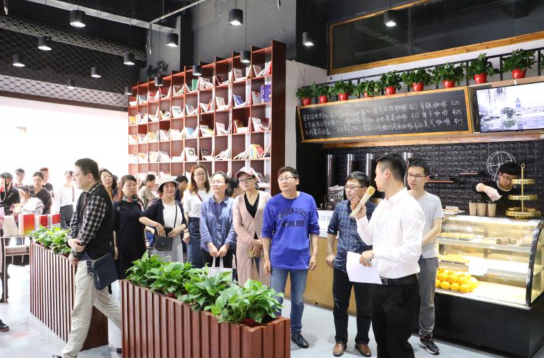 该阅读推广基地坐落于温州市茶山大学城商务中心,占地面积300多平方米,藏书近3000册,可同时容纳六七十位读者。基地以“书吧”的形式向市民免费开放,配套有中国电信营业厅、咖啡吧和小米体验馆,读者既可以静静阅览,喝一杯咖啡、奶茶,品一品甜点,听一听音乐,享受一段轻松的“愉阅”时光。此外,读者群体还可以预约申请在此举办沙龙、讲座等读书活动,部门的党支部学习活动也可以在此预约举行。