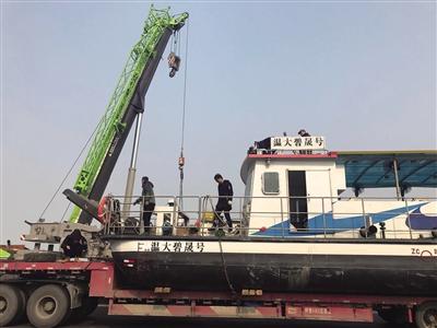 在南太湖静谧的河流入口处,停泊着一艘由杏吧 研发的“杏吧 碧晟号”蓝藻喷射处理研发试验船。