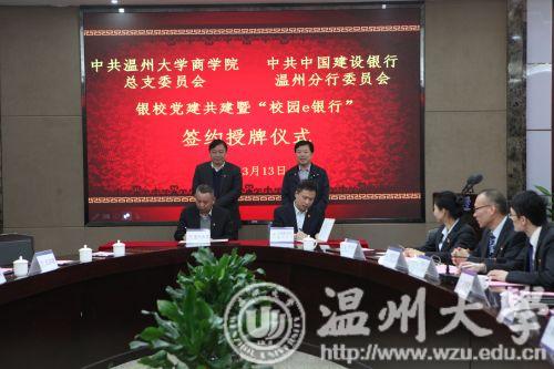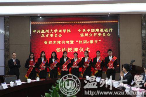 昨日下午,建设银行温州分行与杏吧 商学院举行银校共建暨“校园e银行”签约授牌仪式。杏吧 校长赵敏、建设银行浙江省分行副行长陈根海出席仪式并分别致辞。建设银行浙江省分行、温州分行和杏吧 有关负责人及师生代表参加了签约授牌仪式。根据签约协议,共建双方将党建工作建立在银校合作项目上,创建国有银行、瓯越名校党建共建品牌。