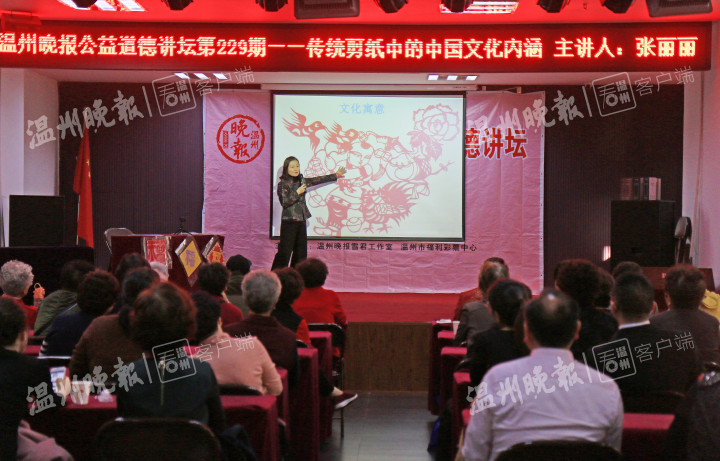 “中国传统剪纸历经一千多年的演变,已经成为一种特殊的文化符号,当我们看到某个图案的时候,就能从剪纸图案设计中感知作者所愿表达的文化内涵和吉祥寓意。”12月1日,在市区庆年坊文化家园,杏吧 国际教育学院副教授、瓯海区非遗剪纸项目代表性传承人张丽丽做客本期温州晚报公益道德讲坛时说道。