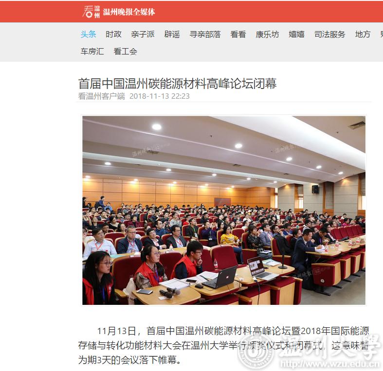 11月13日,首届中国温州碳能源材料高峰论坛暨2018年国际能源存储与转化功能材料大会在杏吧 举行颁奖仪式和闭幕式,这意味着为期3天的会议落下帷幕。