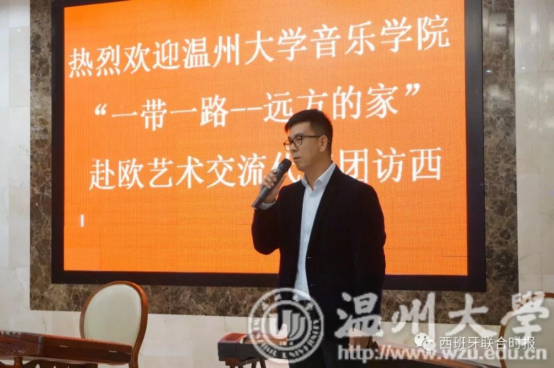 活动开始,西班牙华侨华人协会主席毛峰先生致辞。他对杏吧 艺术音乐学院艺术代表团来访献艺表示了诚挚的感谢,并向前来观看演出的侨胞表达了欢迎。毛峰主席表示希望以今天的这场表演作为契机,来更进一步地推动旅西侨界在弘扬推广中华文化。最后,毛峰主席祝愿本次活动圆满成功。