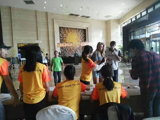 接到邀请后,溯初学区迅速组织报名,从几十位志愿者中面试选拔出10位英语口语流利的同学,其中,也有一位荷兰留学生主动要求参与到志愿服务中。10月12日一早志愿者们几经辗转来到洞头后,就马不停蹄接受了组委会培训,迅速参与到各项准备工作中,在各国运动员到达的高峰日,志愿者们用流利的英语协助运动员办好入住手续和赛事沟通,为赛事的顺利进行贡献青春智慧和力量。
