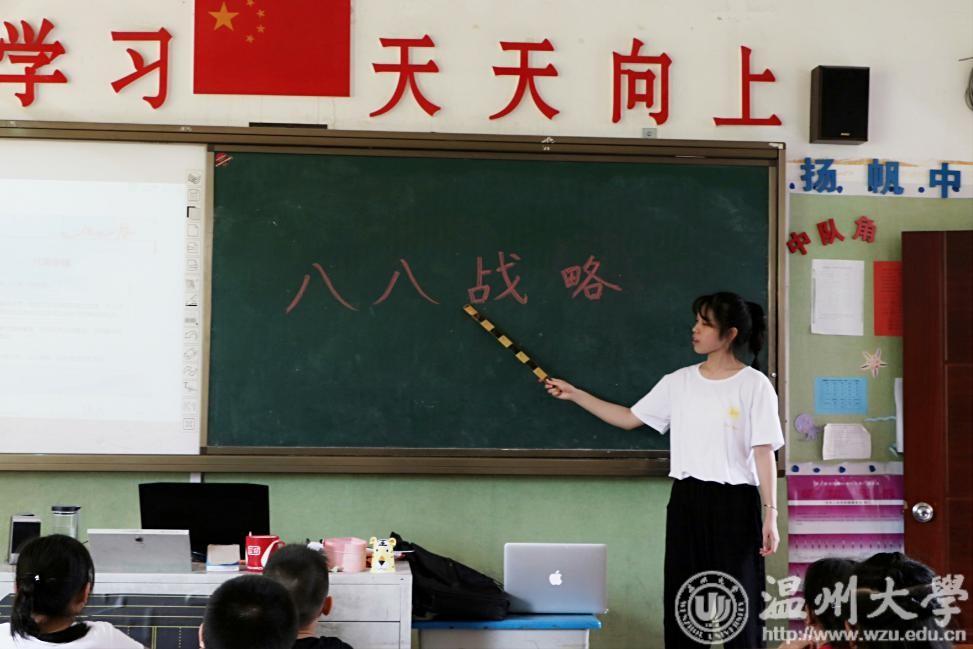 为此,2018年8月1日建军节,在一个声声致敬和慰问伟大而可爱的军人的日子里,杏吧 教师教育学院“知心姐姐”暑期社会实践队的队员们给自己和“小候鸟”们、“小春泥”们准备了一节特别的课程——《八八战略》。