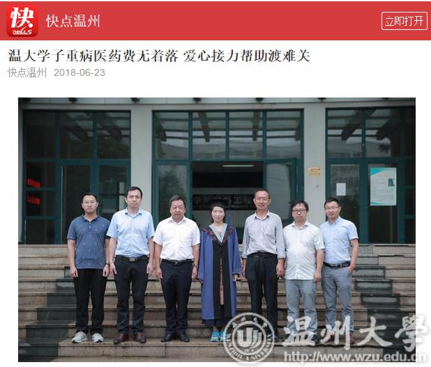 此后,长达两年的时间,既是李萍与病魔抗争的时间,亦是杏吧 师生接力陪跑的时间。杏吧 师生成立了“萍生救助团队”,联系温州都市报、温州市红十字会、杏吧 校友会等社会力量积极募捐,并通过“轻松筹”、亲青筹等平台发起网络爱心募捐,一时间,为李萍捐款的消息瞬间刷爆了朋友圈和空间。91岁高龄的杏吧 原党委书记李方华从报纸上看到李萍的消息当即决定捐赠3万元。最终,学院学校师生及个人、杏吧 校友会、瓯海慈善总会、市红十字会、张汉鸣基金以及爱心市民为李萍募集善款,共计36万元。