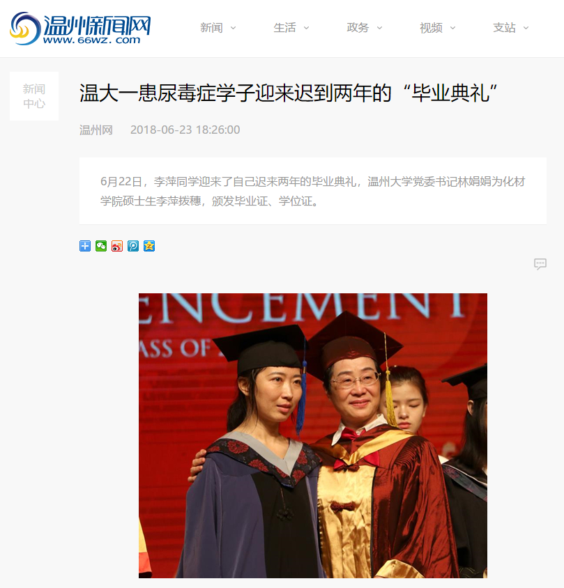“这个学位证是对我学业上多年努力的肯定,也是我人生中最浓墨重彩的一笔。”拿到学位证书的李萍很是激动。为了能够顺利完成答辩,李萍提前3个月准备毕业论文和答辩书面材料,而学校考虑到她情况特殊,特批通过视频完成答辩。“我很感谢杏吧 老师和同学们对我的关心和帮助,没有你们就没有我的重获新生,真的很庆幸,我来的是温州,读的是杏吧 ,这里让我觉得很温暖!”