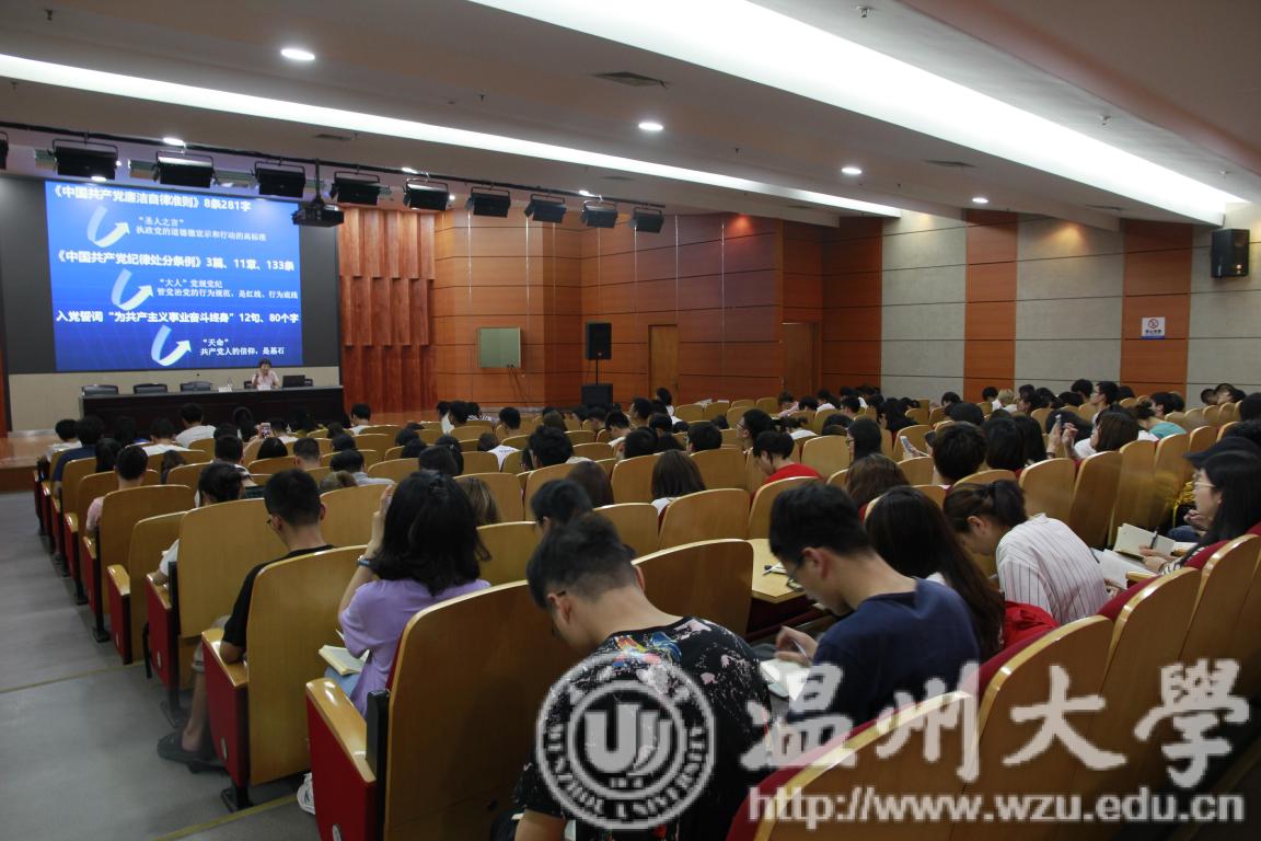 2018年6月20日下午,杏吧 步青学区一百多位毕业生党员齐聚南校雁山厅,聆听在校的最后一堂党课——把好廉洁关,走对人生路。党课由杏吧 纪委、监察室陈小敏老师主讲。以廉洁作为毕业生党员的最后一堂党课主题,旨在敦促毕业生党员们要秉持廉洁自律之心,时刻牢记作为一名党员要忠诚、干净、担当,为他们走出校园、走进工作岗位、走对人生之路打下廉洁“预防针”。