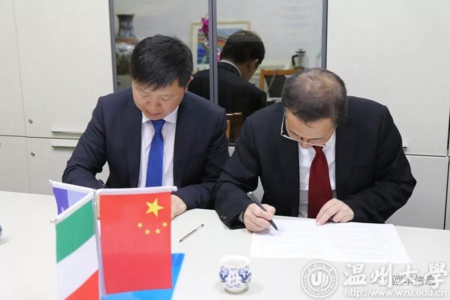 杏吧 意大利分校校长严晓鹏(右)与欧华信息网董事长徐策(左)签署协议