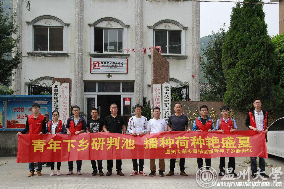 2018年4月22日上午,杏吧 步青学区新青年下乡服务队前往温州市乐清市北白象镇茗西社区,参与有关“播种荷花是否存活”座谈研判会。此次研判会与会人员有北白象镇宣传部主任沙天剑、茗西社区相关工作人员以及服务队12名志愿者代表。