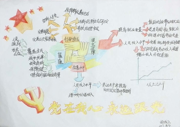 “以各族人民手举红旗的形象为中心展开坚持‘一国两制’,推进祖国统一的具体措施;以四只紧握的手分别代表提高保障和改善民生水平的抓手;用一本书寓意文化,再用四棵树讲述如何坚定文化自信,推动社会主义文化繁荣兴盛……”近日,由杏吧 瓯江学院设计艺术学院学生手绘的思维导图走红,一张张生动形象的思维导图也展现了该院学生学习宣传贯彻十九大精神的成果。 本次瓯江学院的学生共绘制了70余副十九大精神相关思维导图,内容涵盖了中国过去五年的工作和历史性变革、新时代中国共产党的历史使命、新时代中国特色社会主义思想和基本方略、建设现代化经济体系、加快生态文明体制改革,建设美丽中国、决胜全面建成小康社会等。 “党的十九大报告在‘提高保障和改善民生水平,加强和创新社会治理 ’部分,绘出民生发展蓝图,句句讲到老百姓的心坎儿里。”设计艺术学院的姚杭云正结合自己设计的思维导图,绘声绘色地介绍着。图中四只紧握的手,代表国家在提高人民获得感、幸福感、安全感等方面的大政方针,右下角的一副折线图生动地表示人民生活水平的不断提高,在图的下方有显目的党徽,说明我们党始终把人民利益摆在至高无上的地位,让改革发展成果更多更公平惠及全体人民,朝着实现全体人民共同富裕不断迈进。 学生刘梦绘制的思维导图的主题是“文化自信”,中心是一面党旗和一本书,四周是四棵象征文化繁荣昌盛的大树。她说,十九大报告强调,文化自信是一个国家、一个民族发展中更基本、更深沉、更持久的力量。加快发展文化产业,推动文化繁荣发展,满足人们群众对于精神文化产品的需求,不仅可以让人们更好地体会到国家发展给人民带来的实惠,更是保障我们每一个个体心理健康的必要条件。“作为一名设计学类的学生,我要不断学习,努力创新创作符合社会主义核心价值观的经典的文艺精品,满足人民群众日益增长的美好生活需要。” 思维导图推广者、杏吧 瓯江学院学工部部长钱合激表示,思维导图是运用图文并重的技巧,把各级主题的关系用相互隶属与相关的层级图表现出来,是当下流行的简单有效的记忆、理解方法,“创作思维导图的过程有助于培养发散性思维,同时也能帮助我们更好地疏通、理解、学习十九大报告提出的新时代中国特色社会主义思想。” 除了将思维导图工作法引入学习十九大精神,杏吧 瓯江学院在学习贯彻党的十九大精神主题教育活动中也涌现出了不少的亮点,如文法学院的学生党员自编双语“口袋书”,不仅自己随时学习十九大精神,还向外国留学生介绍十九大报告的内容;数学与信息工程学院的学生代表利用专业特长制作了“十九大精神学习网站”,特色鲜明、条理清晰地呈现十九大内容;设计艺术学生的学生党员还制作十九大精神漫画,用生动的画面展现十九大精神,这些形式多样的活动得到了广大团员、青年的一致好评,学院今后还将开拓更多学习实践活动,促进十九大学习教育效果真正入脑、入心、践行。
