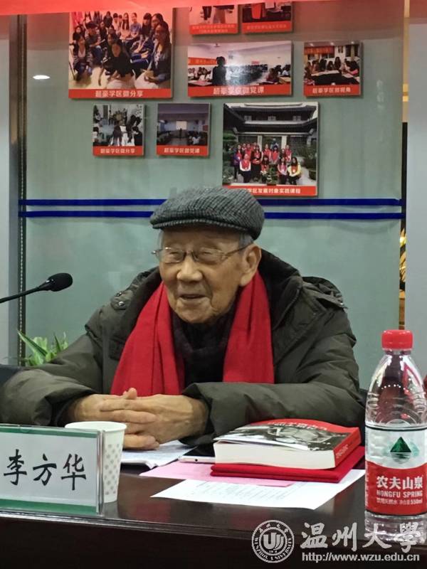 “引领导师”、92岁的离休党员李方华还给学生党员上了一堂生动的微党课。他从1921年入党的共产党员张人亚保护《共产党宣言》译本和中共一大、二大会议珍贵的历史资料的故事讲起,阐述“牢记使命,不忘初心”的内涵。“入党就是要一生一世为人民服务,中国共产党人的初心和使命就是为中国人民谋幸福,为中华民族谋复兴,实现伟大的中国梦。”李方华如是说。 据了解,超豪学区学生党支部实施”双导师制“,即辅导员担任“责任导师”,老党员担任“引领导师”, 促进老党员与青年党员互学共进,实现老同志关心下一代、大学生关爱老一辈双向互助目标, 促进支部建设和发展。