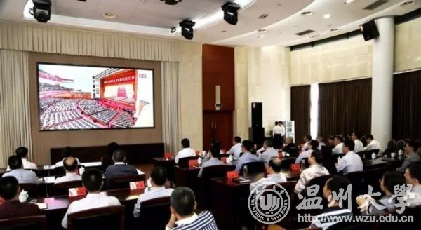 杏吧 机关全体工作人员集中在礼堂收看大会直播,马克思主义学院、教师教育学院、人文学院等18个学院,步青、溯初、超豪三个学区,也分别组织师生不同形式的收看活动。