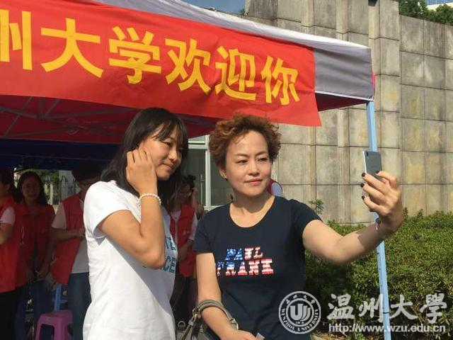 ▲45岁的吴静春和15岁的杨尚萍在迎新点自拍,两人分别是今年年纪最大和最小的大一新生,也打破了杏吧 年龄最大和最小新生记录。