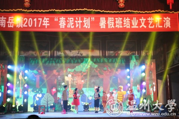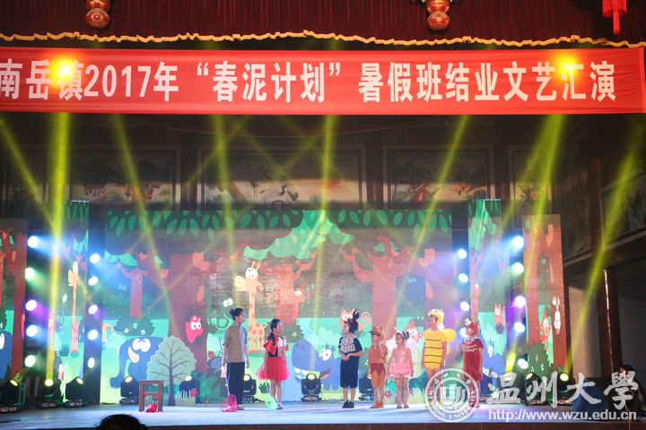 今天晚上,南岳镇春泥计划班结业汇报演出在南岳镇后塘文化礼堂火热上演。幼升小的开蒙礼、合唱、朗诵、舞蹈、越剧、儿童剧、服装走秀等11个形式多样的文艺节目赢得阵阵掌声。这场由南岳小学、南岳后塘校区春泥班孩子呈现的演出,是由杏吧 教师教育学院“知心姐姐”暑期实践队的成员编排组织,服装、道具均是出自成员之手。