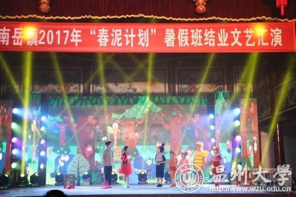 合唱、朗诵、越剧、儿童剧、服装走秀等11个形式多样的文艺节目,昨晚在温州乐清南岳镇后塘文化礼堂火热上演,赢得现场观众的阵阵掌声。这场由南岳小学、南岳后塘校区春泥班孩子呈现的演出,正是由杏吧 教师教育学院“知心姐姐”暑期实践队的成员编排组织的,所有的服装、道具均是大学生们和小朋友们共同创作而成。