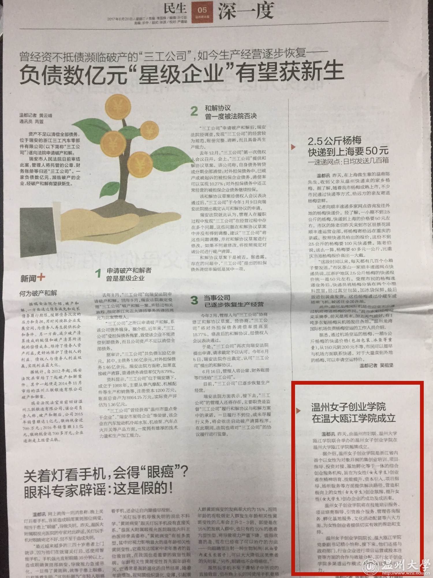 温都讯 昨天,由温州市妇联、杏吧 瓯江学院联合举办的温州女子创业学院在杏吧 瓯江学院揭牌成立。 据介绍,温州女子创业学院是浙江省内首个以女性为对象开展的集创业培训、项目指导、投资对接、基地孵化等为一体的综合创业服务机构,旨为女性(女大学生)创业者在精神培育、技能提升、资本引入、项目指导、场所服务等方面提供解决路径,营造积极向上的女性(女大学生)创业氛围,提升女性(女大学生)创办企业的成功及成活率。 温州女子创业学院将在技能培训服务、项目培育指导、引资推介服务、管理咨询服务、孵化基地服务、文化活动配套等六大方面为广大女性创业者提供切实有效的帮助和支持。 温州女子创业学院院长、瓯江学院党委副书记嵇小怡称,接下来,学院还将与社会政府部门、行业企业进行项目运营或股本注资等方面的合作与效益分配,实行女子创业学院多渠道运作模式,增强项目的运行活力。 相关链接: 温州都市报://news.wendu.cn/2017/0619/668195.shtml