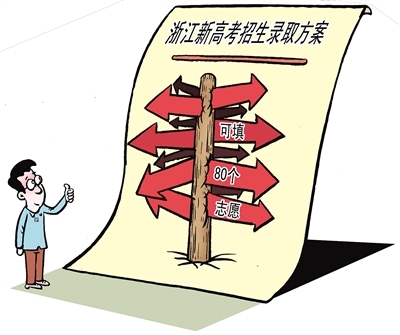 在浙江省新的高考录取方案中,考生可以按“院校+专业”填报80个专业平行志愿,虽然志愿数量明显增加,但与过去可以选择“专业调剂”相比,考生专业志愿填报需要更加谨慎,更好地利用选择权。学校希望通过部分专业合并按类招生,让学生在大一通过基础课程的学习,适应大学的学习方式,培养专业兴趣。到大二时,根据自己特长喜好和相对明确的职业生源规划,再通过专业分流,明确专业学习方向。