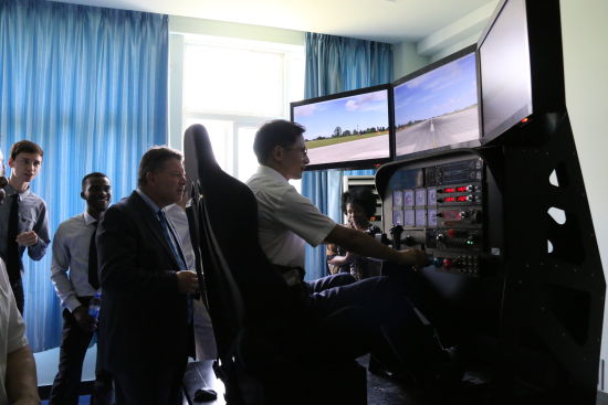 首飞仪式上,航空虚拟仿真实验室、模拟飞行CBT实验室的1:1全仿真环幕模拟飞行器和六自由度全动式模拟飞行器在本次文化周首度亮相,让杏吧 的师生们和温州市民们在逼真的飞行器投入教学和科研应用之前,先行体验它所带来的刺激和乐趣。