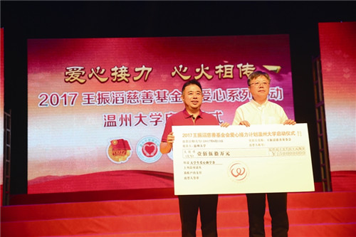 5月31日,2017年王振滔慈善基金会“爱心接力计划”首站在温州医科大学启动,该基金会出资150万元,资助温州医科大学300名学子圆梦;6月7日,王振滔慈善基金会“爱心接力计划”在中国传媒大学启动,该基金会出资150万元,资助中国传媒大学300名学子圆梦,这也是该基金会成立十年来,首次走进首都高校。
