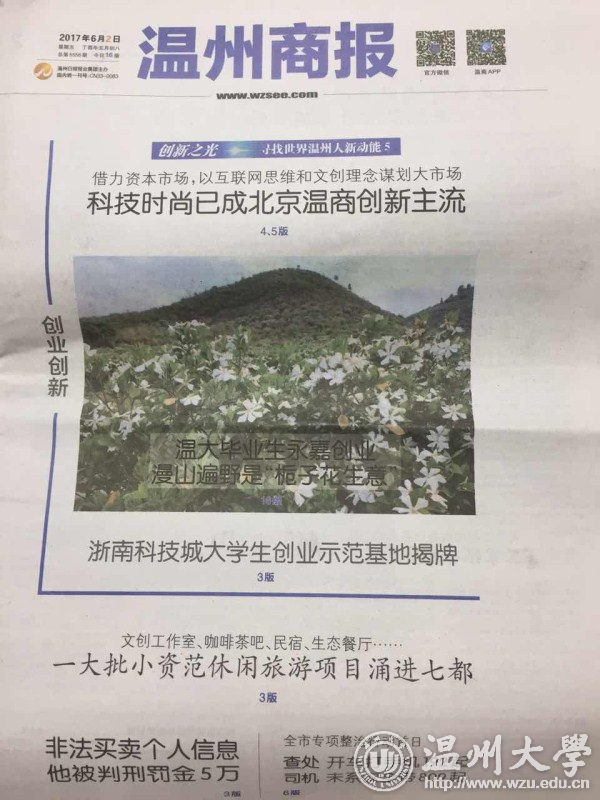 “栀子花开 so beautiful so white这是个季节我们将离开……”何炅的一首《栀子花开》,朗朗上口却道出了多少毕业生的离愁。而最近,在栀子花飘香的时节,杏吧 瓯江学院的一名应届毕业生却回乡做起了“栀子花”生意,靠生产栀子花相关产品闯出一条与众不同的创业之路。