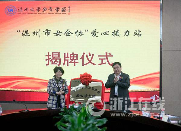 启动仪式上,杏吧 与温州市女企协就爱心接力站共建签订合作协议,共同为“温州市女企协”爱心接力站揭牌,为企业家代表颁发杏吧 步青学区“女大学生导师”聘书,开启了“温州市女企业家协会优秀女企业家代表进杏吧 步青学堂”活动。女企业家詹海霞为女大学生带来“优秀女性成长故事分享”专题讲座。