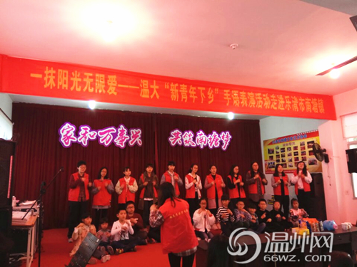 爱,不必多言,一个手势,一个眼神即可。本次新青年下乡的志愿者充满热情,他们寓教于乐,与小朋友自由结队,教小朋友们一些基础的手语动作,孩子们学得非常认真,他们在音乐的伴奏下上台表演,一起感受快乐。一名志愿者表示:“很荣幸有这个机会参加到这次活动当中。能够用我们所学的手语,带给小朋友们更多的知识。将爱心与温暖带给更多的人,这是大学生该做的事情!”