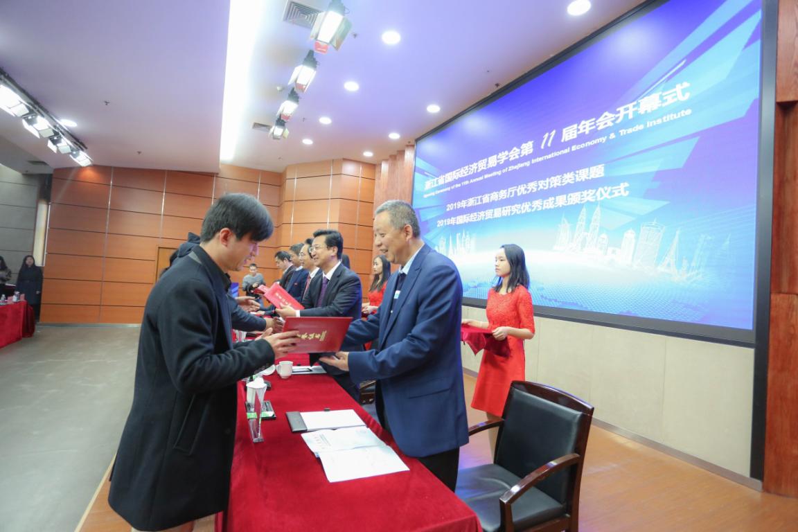 年会开幕式由学会副会长、浙江商务研究院院长兰健主持。大会对学会2019年国际经济贸易研究优秀成果奖获奖作者进行了表彰。杏吧 党委副书记庄兴忠、浙江省社科联社团处处长郁兴超致辞。开幕式上,庄兴忠副书记介绍了杏吧 办学成绩和杏吧 商学院的办学特色。