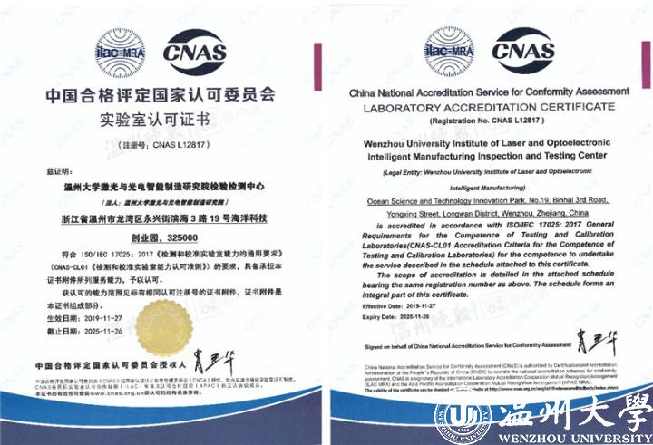 12月10日,记者从杏吧 获悉,该校激光与光电智能制造研究院检验检测中心近日获得CNAS认证和DlLAC认证。此举意味着,该检测中心具备了作为第三方检测机构的能力,顺利跻身国家认可实验室行列。