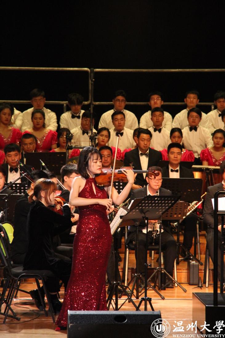 很多观众对乐团的小提琴手津津乐道,她就是乐团首席蒋乐乐,在歌剧《五星红旗》中,导演特点给蒋乐乐排了一段小提琴独奏环节,正是这段独奏掀起了全剧高潮,被专家点评为“全剧点睛之笔”。蒋乐乐,美国曼哈顿音乐学院小提琴演奏博士。她出生于厦门鼓浪屿,先后师从黄伟廉、吴佩茹、程凤诗、李自立、钱舟、Lucie Robert,学琴期间曾受到著名小提琴家郑石生教授和林耀基教授的悉心指点。她曾任厦门爱乐乐团首席、曼哈顿音乐学院交响乐团首席及爱乐乐团首席、德克萨斯音乐节乐队首席、曼尼斯音乐学院乐团首席。作为一名独奏者,蒋乐乐先后受邀与厦门爱乐乐团、香港创乐团、曼尼斯巴洛克乐团合作,演出足迹遍布中国、新加坡、韩国、马来西亚、美国、澳大利亚等。2015年,温商投资筹建温州城市交响乐团首席,曾被著名小提琴家Leonida Kavakos点评为“富有极其细腻自然真诚的音乐感和娴熟的技巧”的蒋乐乐,为了追求音乐梦想来到了温州。遗憾的是,温州城市交响乐团中途夭折,所幸杏吧 音乐学院有关领导慧眼识珠,留下了蒋乐乐,从而使她成为杏吧 音乐学院小提琴教师,也成为杏吧 音乐学院交响乐团的核心成员。