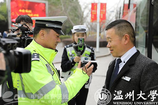 出发现场,温州市公安局交通管理局的交警同志在现场对每一辆校车和每一位驾驶员进行“发车体检”,重点检查车辆保险、年审、违章等情况,并对校车驾驶员的证件进行检查,依次进行酒精呼吸测试,确保春运护送的校车、驾驶员状态良好。同时,交警部门在发车处设立了交通安全宣传站点,针对大学生出行特点,通过展板海报、扫码互动、签字承诺和现场讲解电动车交通事故案例以及乘坐“黑车”、“改装车”的安全隐患等方式将“平安锦囊”送至每个学生手中。“平安锦囊”里不仅有春节福、春联,还有电动车出行安全手册,为学生们送上新春祝福的同时,也在提醒他们返乡路上遵守交通法律法规,带着平安回家过年。