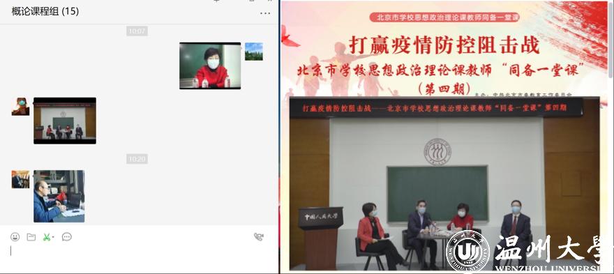 面对疫情,学院成立线上教学服务队,定期推送全国思政课第一课教学案例,全员收看北京市学校思政课教师“同备一堂课”活动网络直播。各教研室举行网络集体备课会研讨杏吧 新学期“思政第一课”之“抗疫思政专题课”教学方案,形成了“抗疫思政小课堂、抗疫思政大讨论、抗疫笔谈千字文”等系列教学活动。