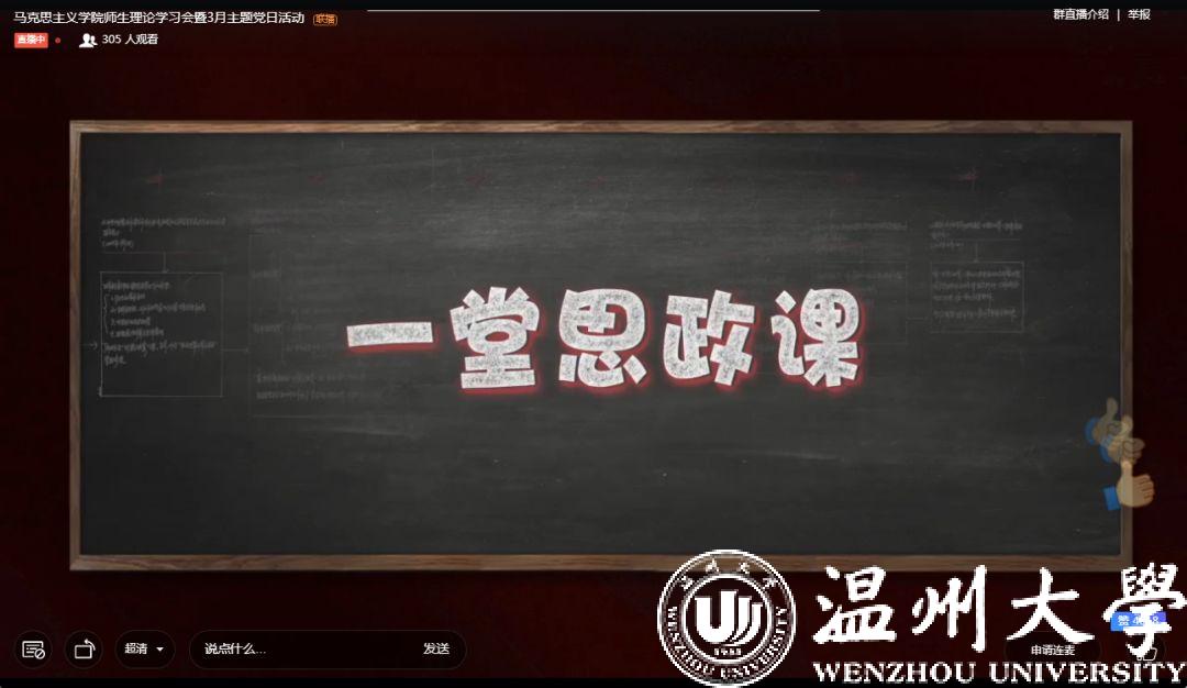 同时,为贯彻落实习近平总书记在学校思想政治理论课教师座谈会上的重要讲话,增强思想政治理论课的思想性、理论性、针对性和亲和力,并结合学校组织部统一部署,学院在3月4日下午以“不见面”形式集中开展理论学习会暨“抗疫情、促发展、当先锋”支部主题党日活动,集体观影《一堂思政课》,深入开展新时代思政课改革创新大讨论活动。